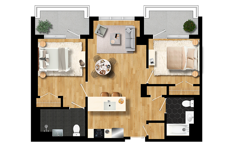 FIND YOURSRheingold’s generously-sized two bedroom units allow you to really stretch out. Deluxe two bedrooms offer a second bathroom, often presented as part of a master suite.