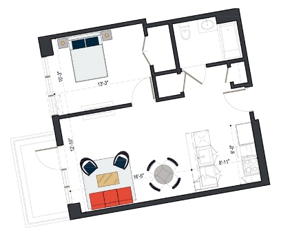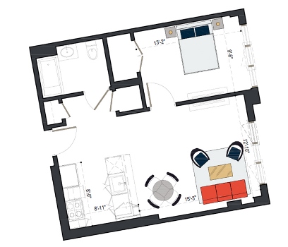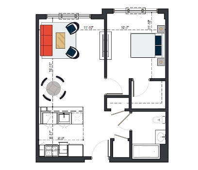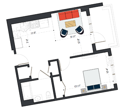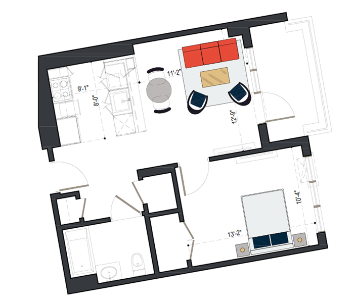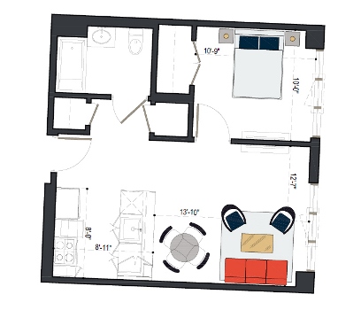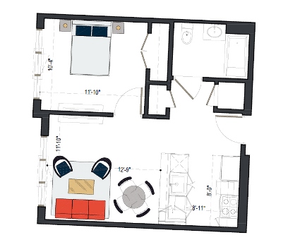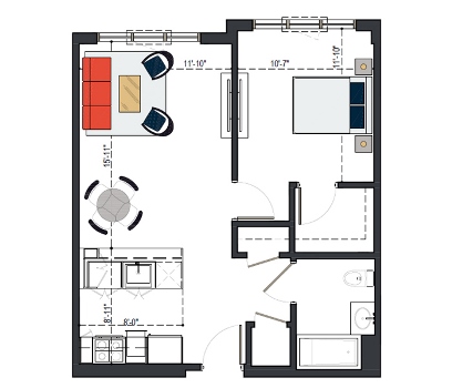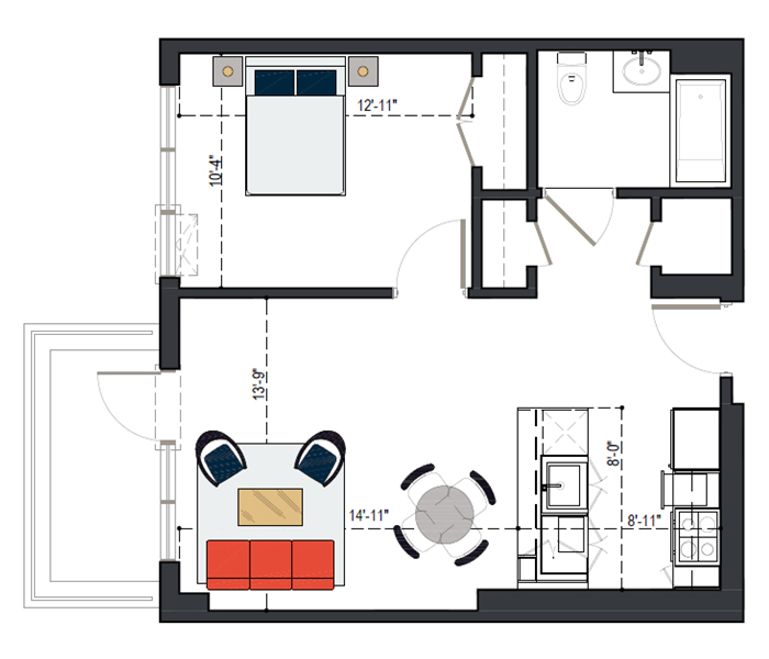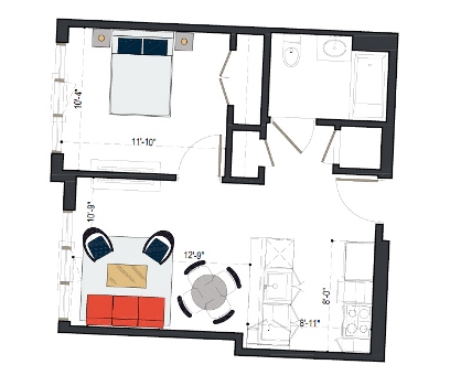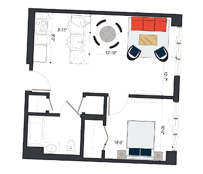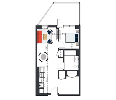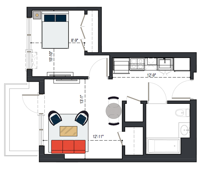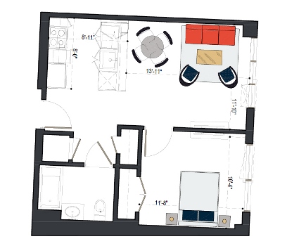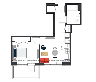 8th Floor, 1 Bed, 511 SF