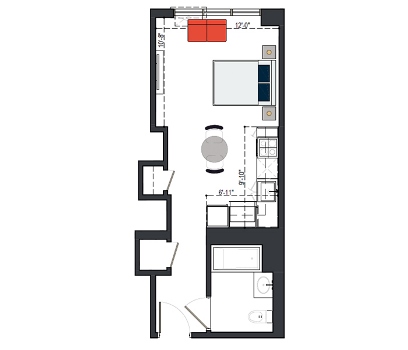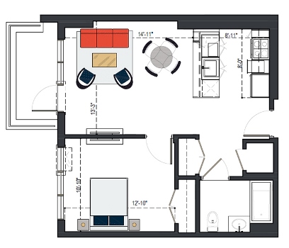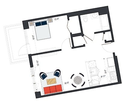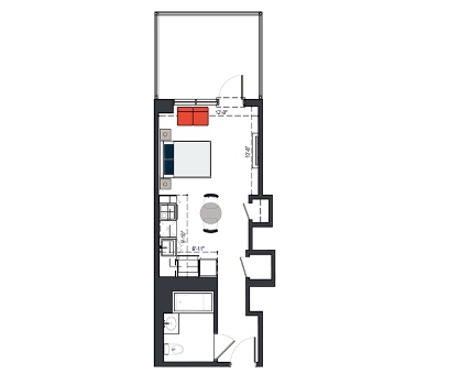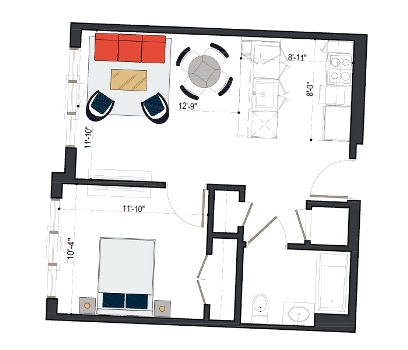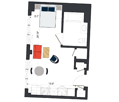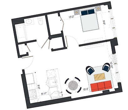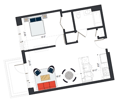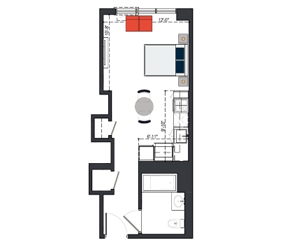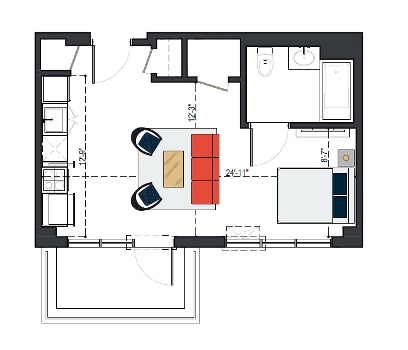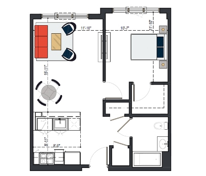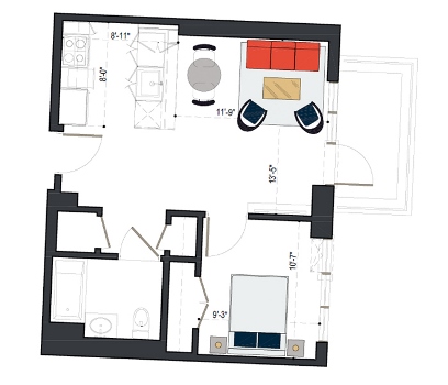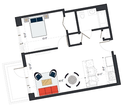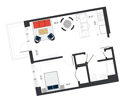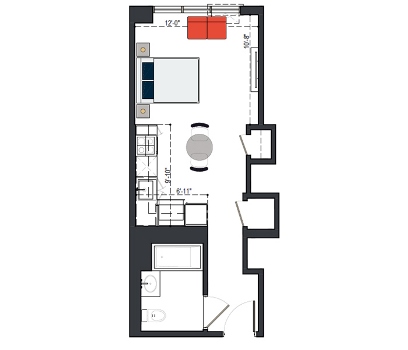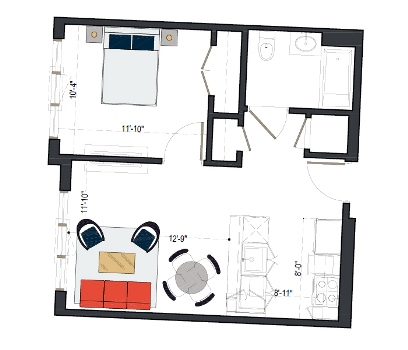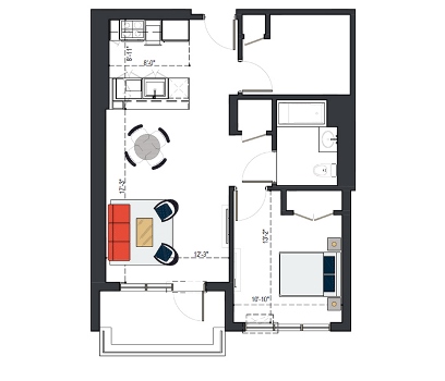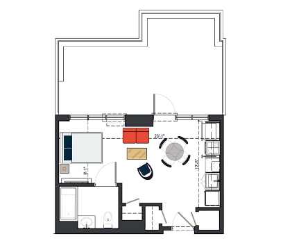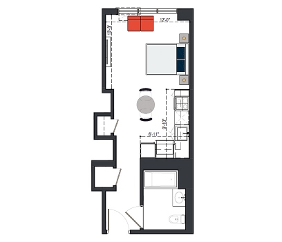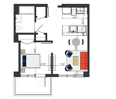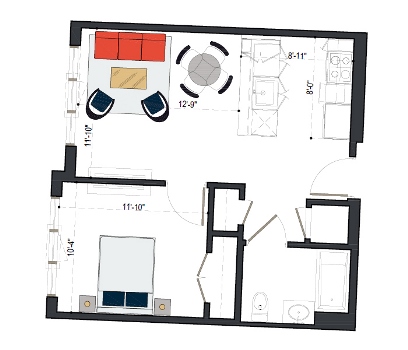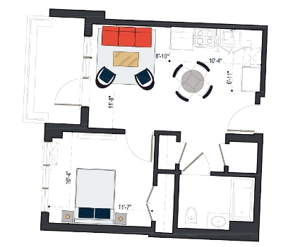 8th Floor, 1 Bed, 533 SF