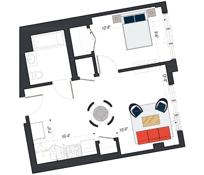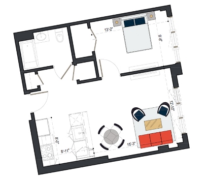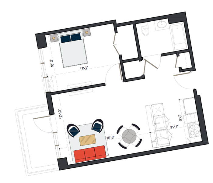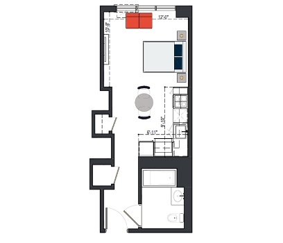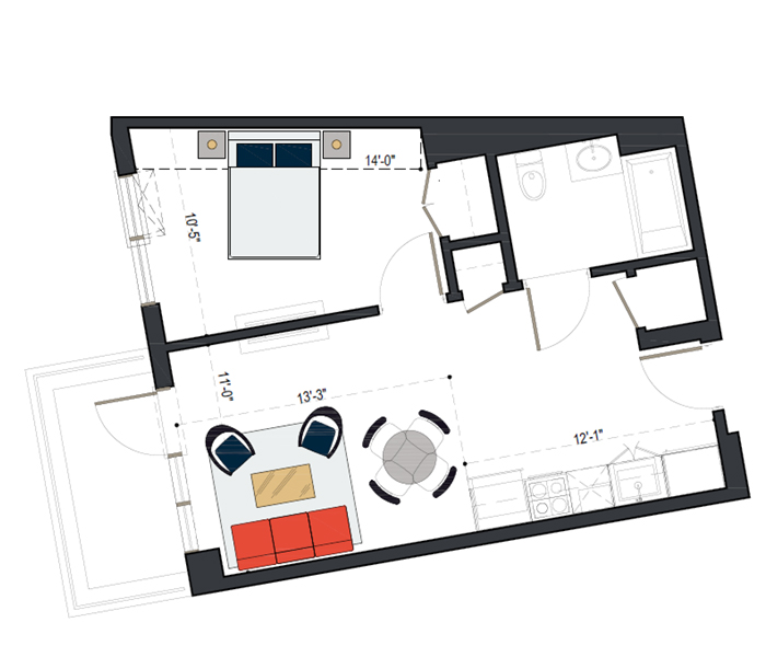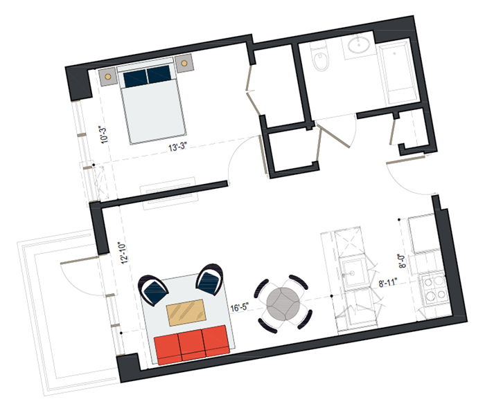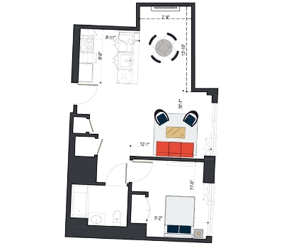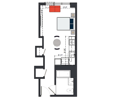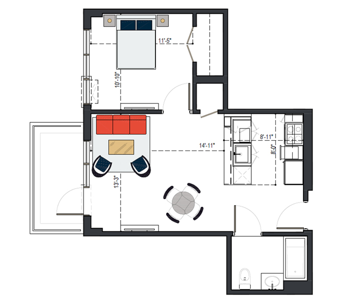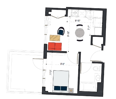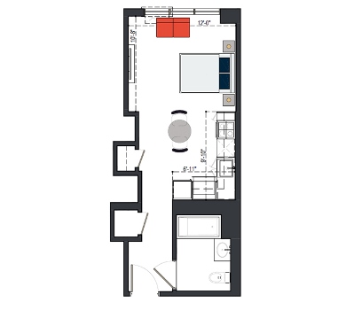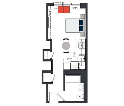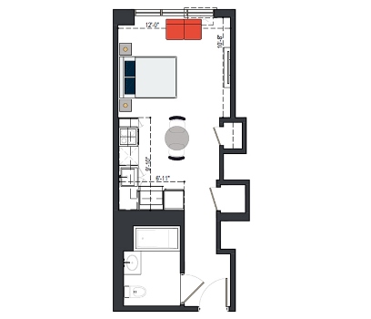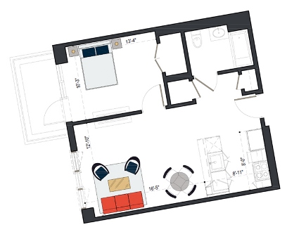 8th Floor, 1 Bed, 533 SF
