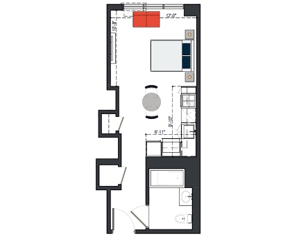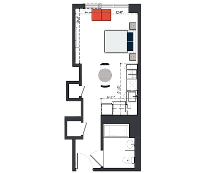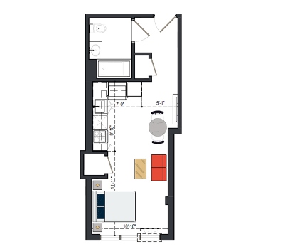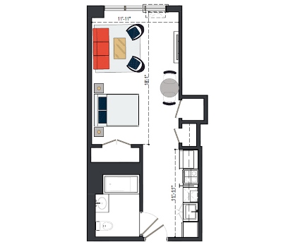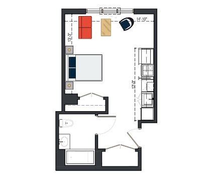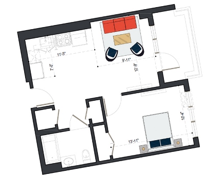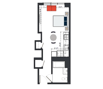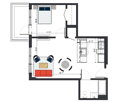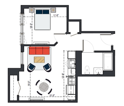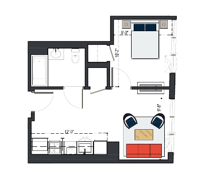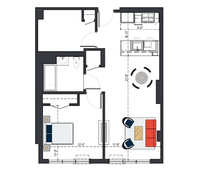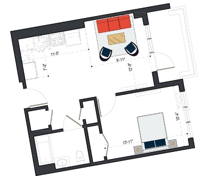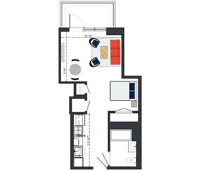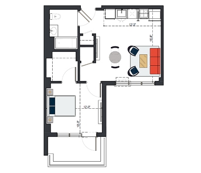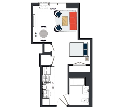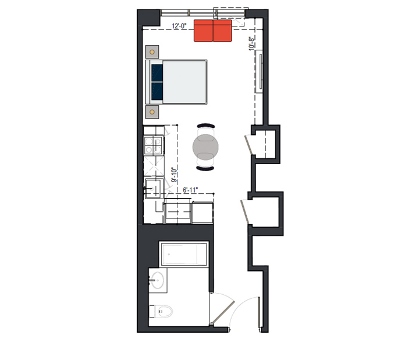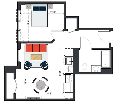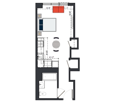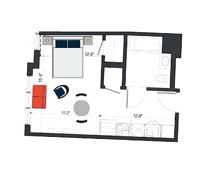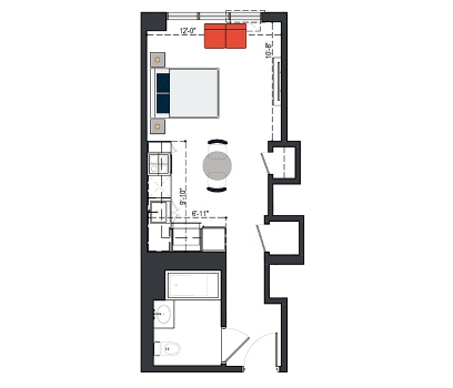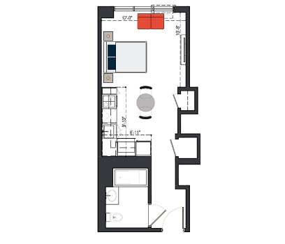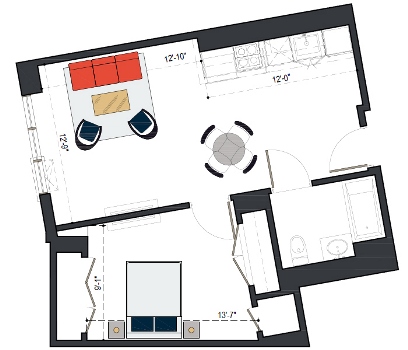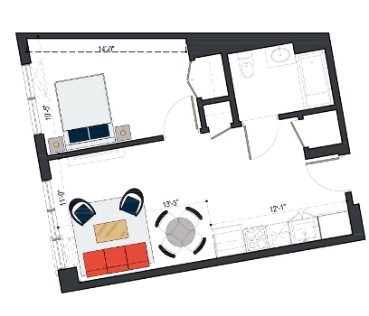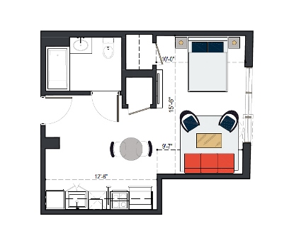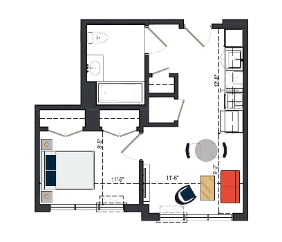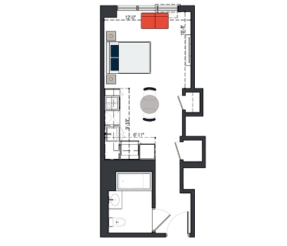 6th Floor, 1 Bed, 550 SF
