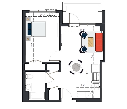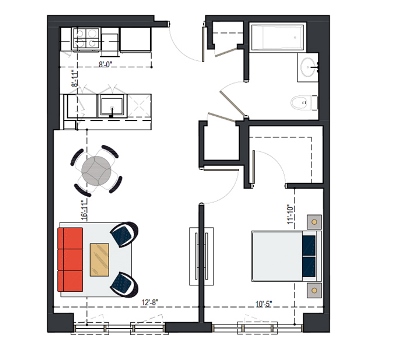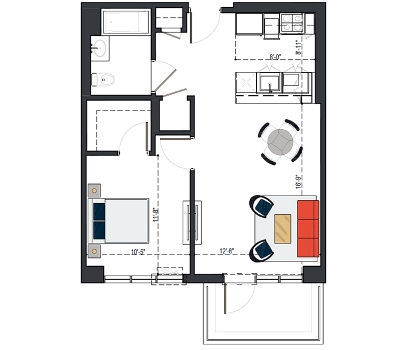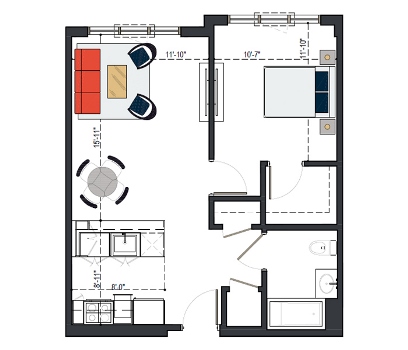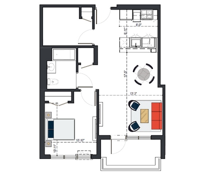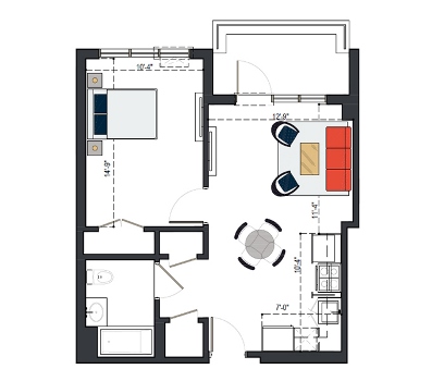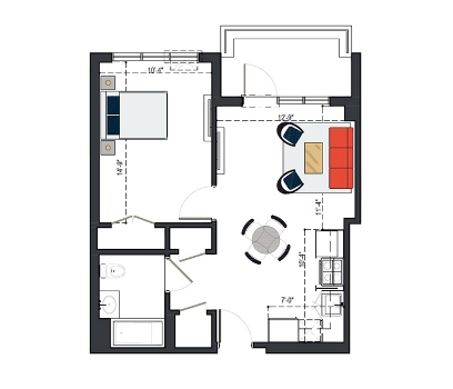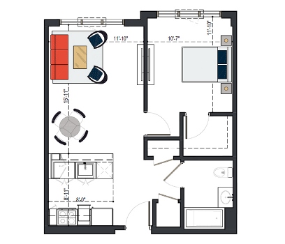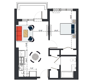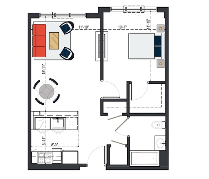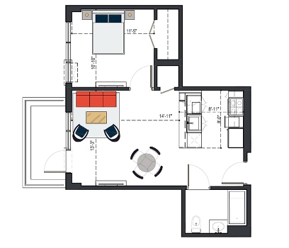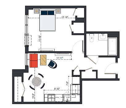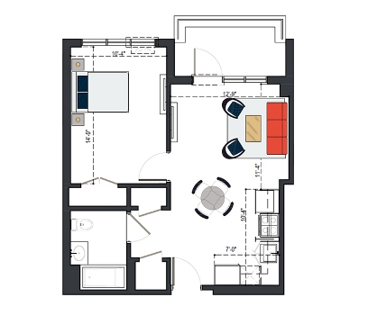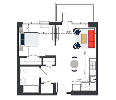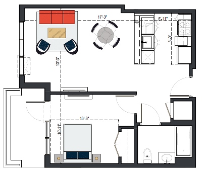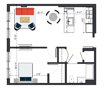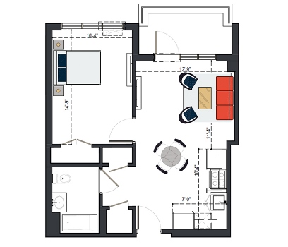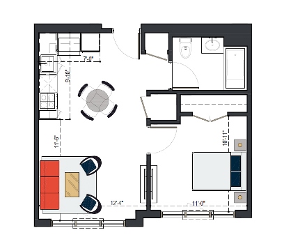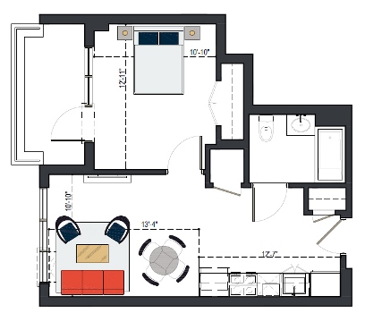 First Floor, 1 Bed, UFAS- MI, 629 SF