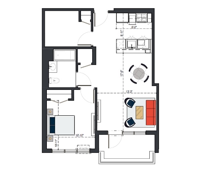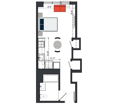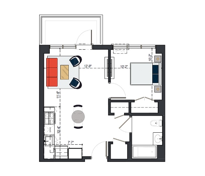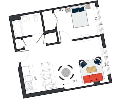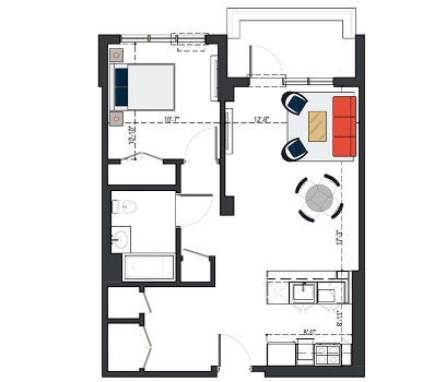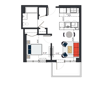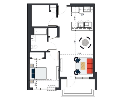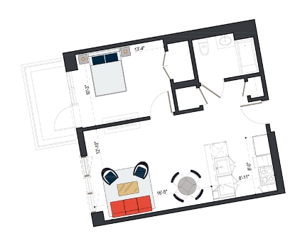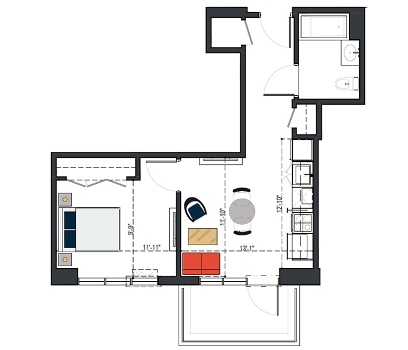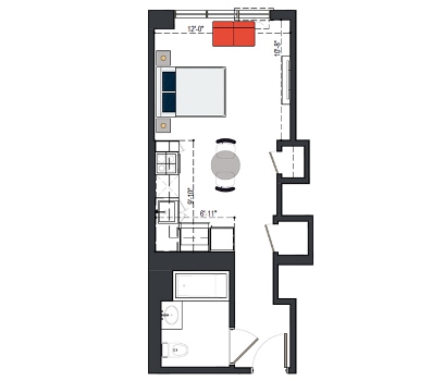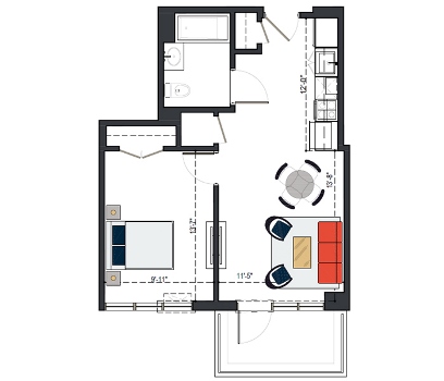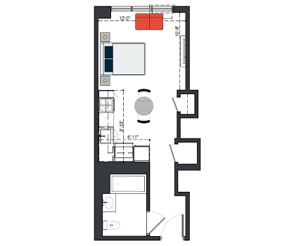 6th Floor, 1 Bed, 551 SF