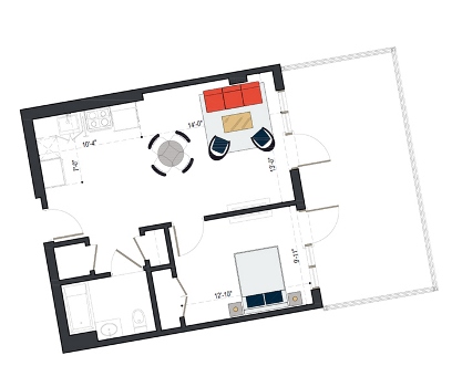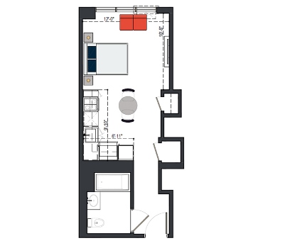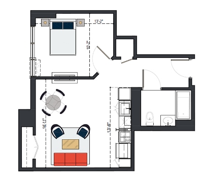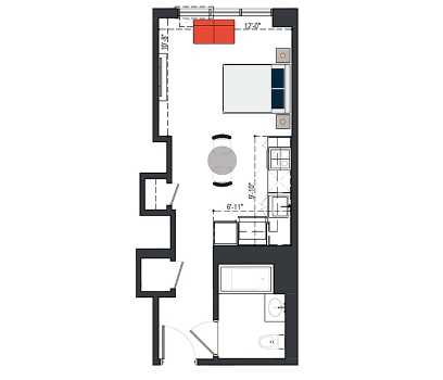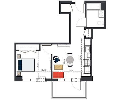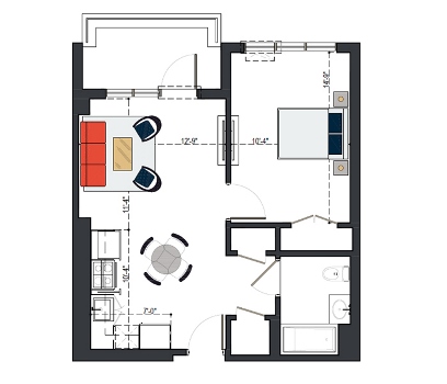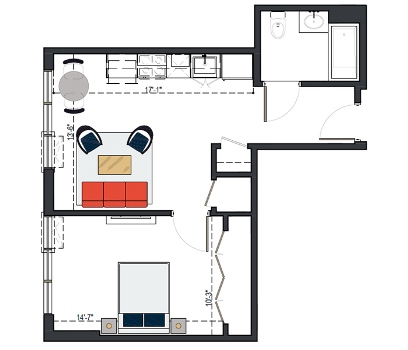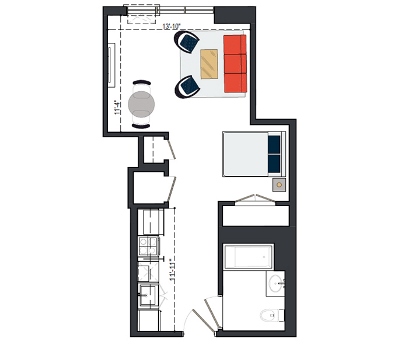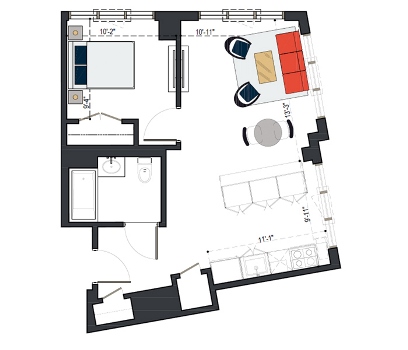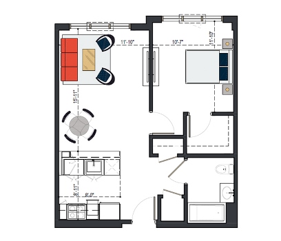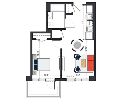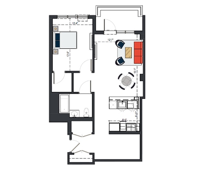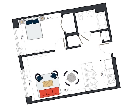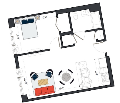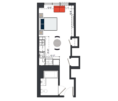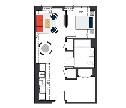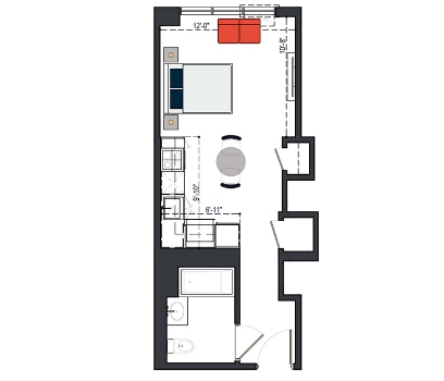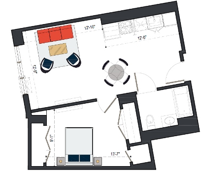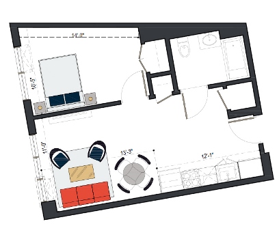 6th Floor, 1 Bed, 561 SF