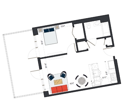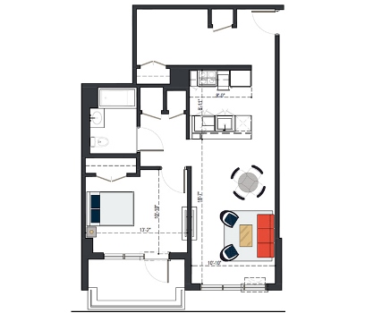8th Floor, 1 Bed, 597 SF