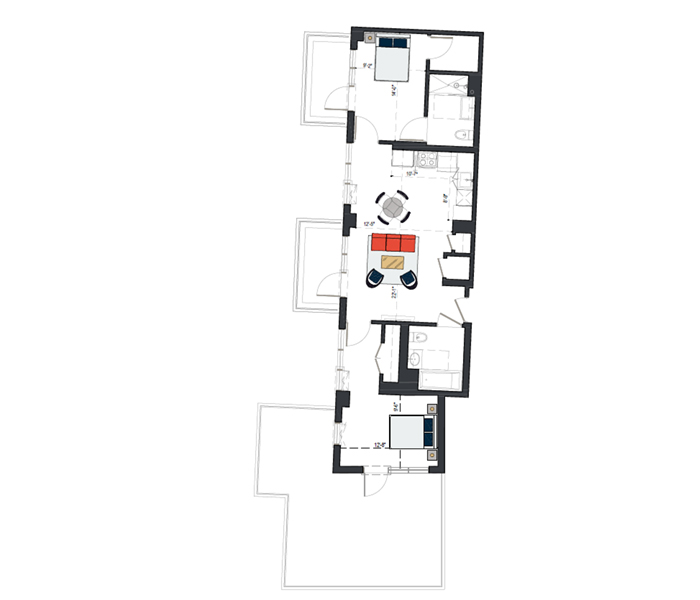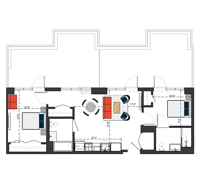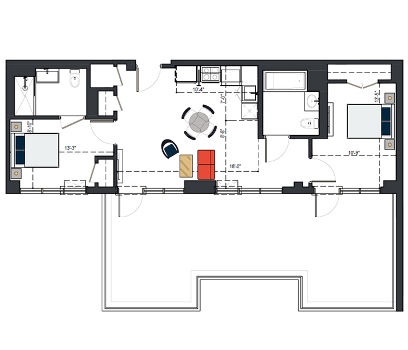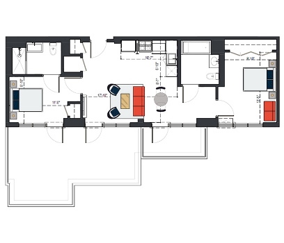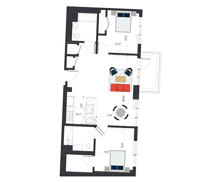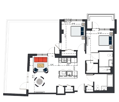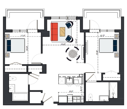 8th Floor, 2 Bed 929 SF