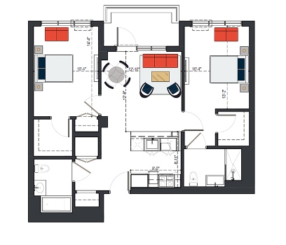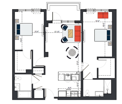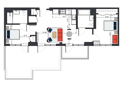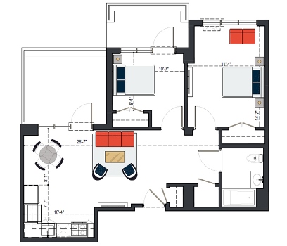 6th Floor, 2 Bed, 879 SF