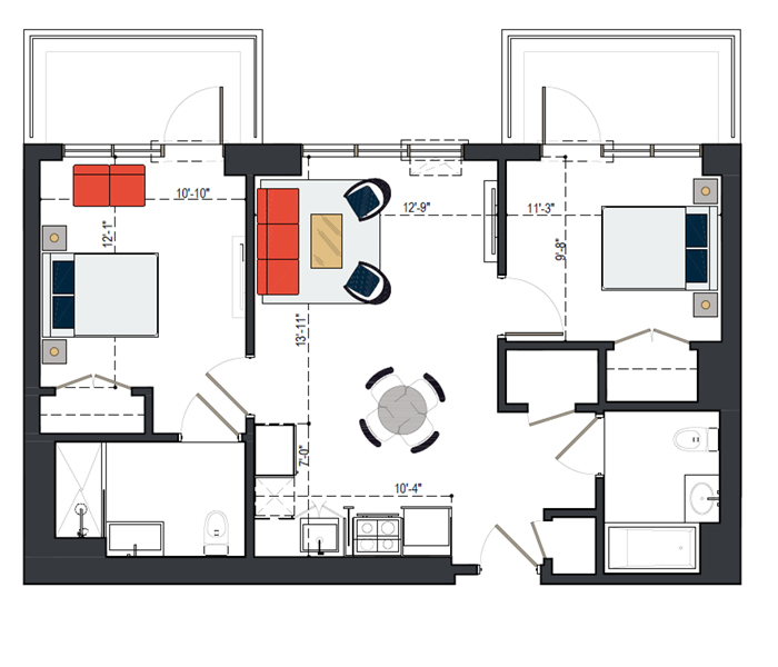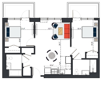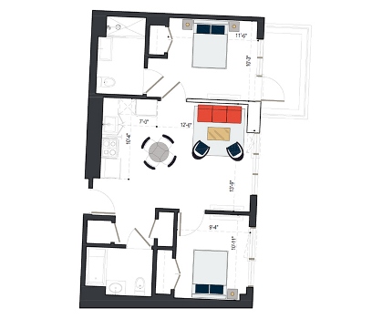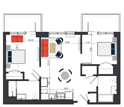 6th Floor, 2 Bed, 934 SF