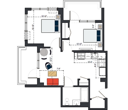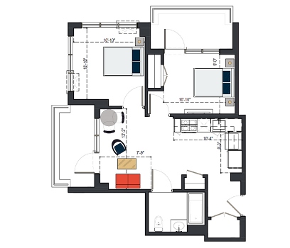 7th Floor, 2 Bed, 794 SF