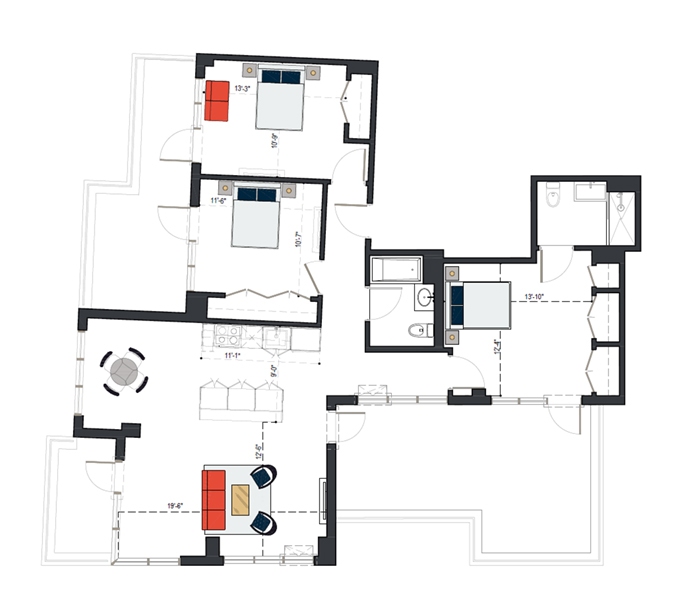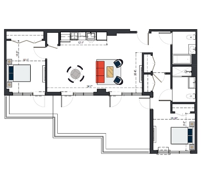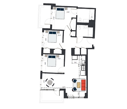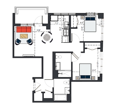 6th Floor, 3 Bed, 1105 SF