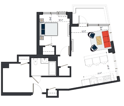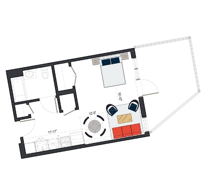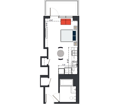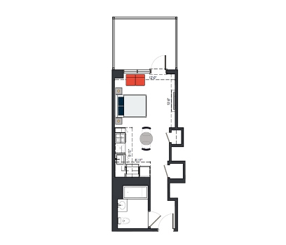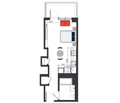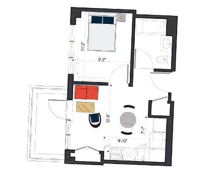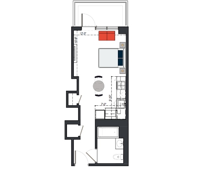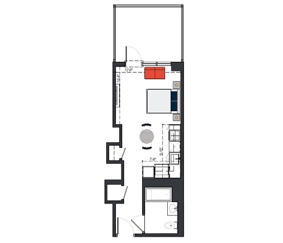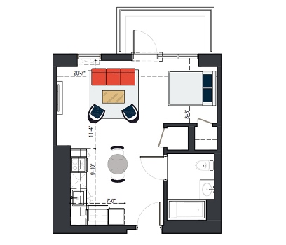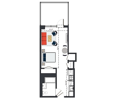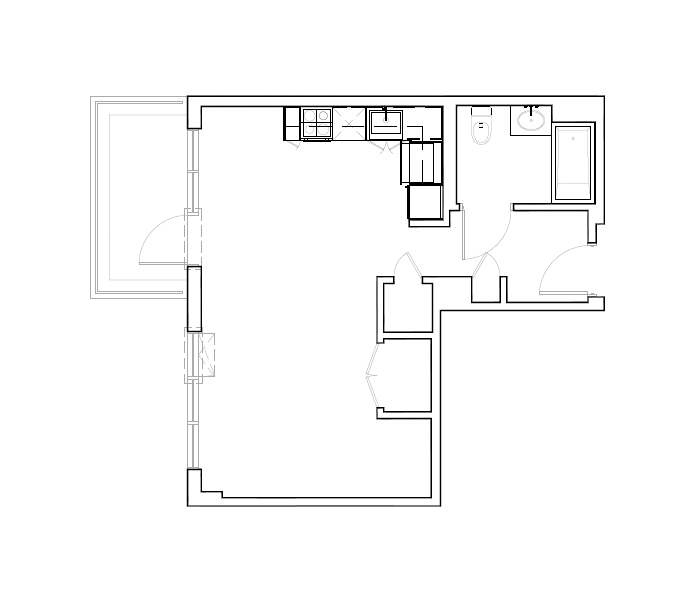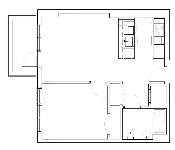 7th Floor, 1 Bed, 543 SF