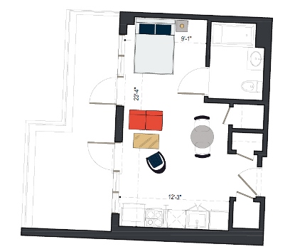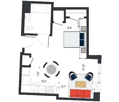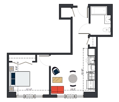 6th Floor, 1 Bed, 471 SF