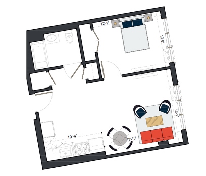 First Floor, Studio, 437 SF