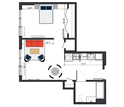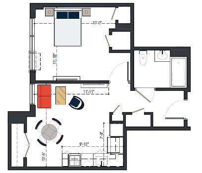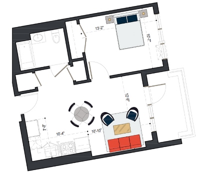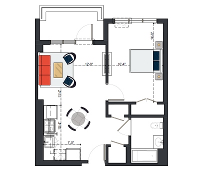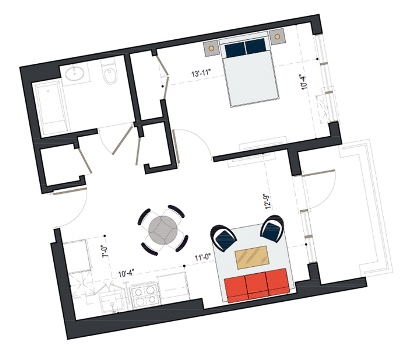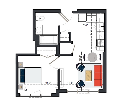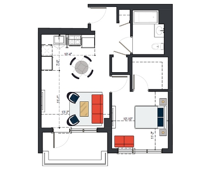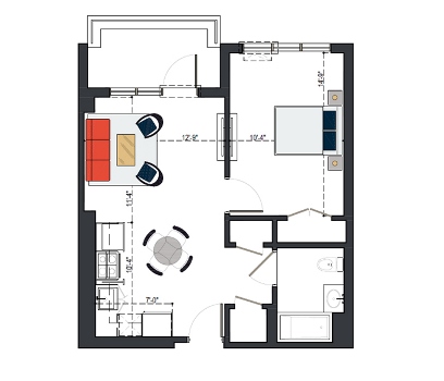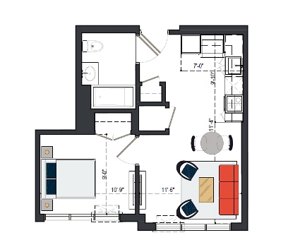 First Floor, 1 Bed, IH UNIT, 579 SF