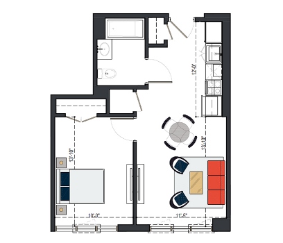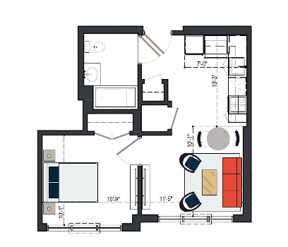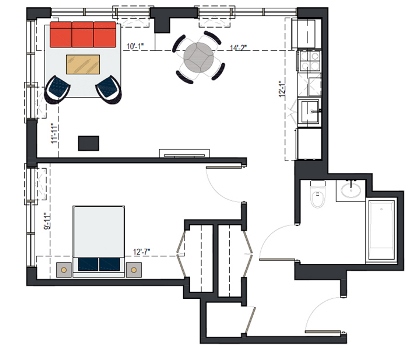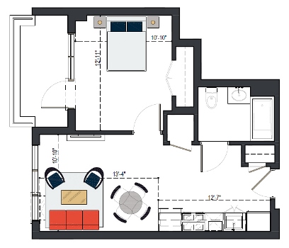 6th Floor, 1 Bed, 555 SF