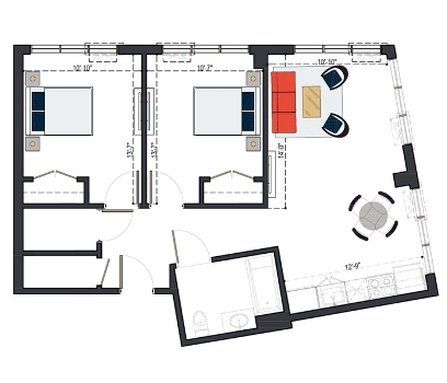 2 Bedroom, 1019 SF