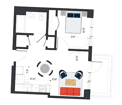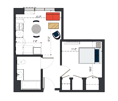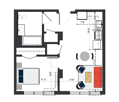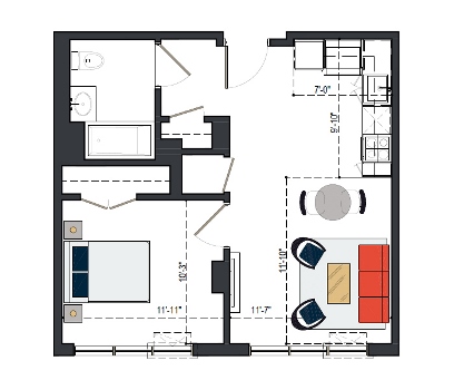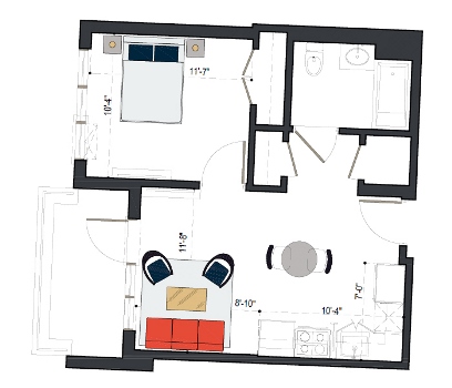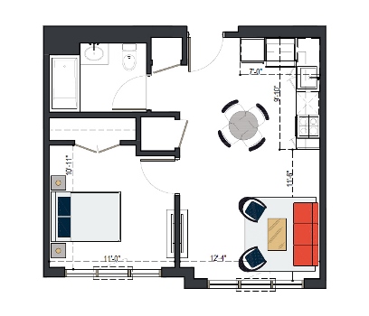 7th Floor, 1 Bed, 560 SF