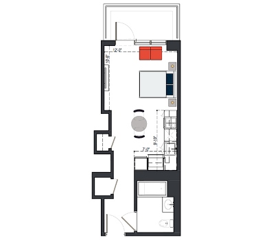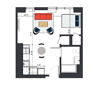 7th Floor, 1 Bed, 547 SF