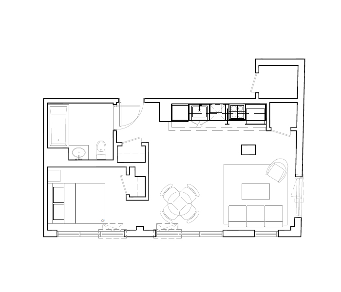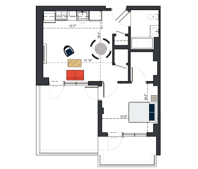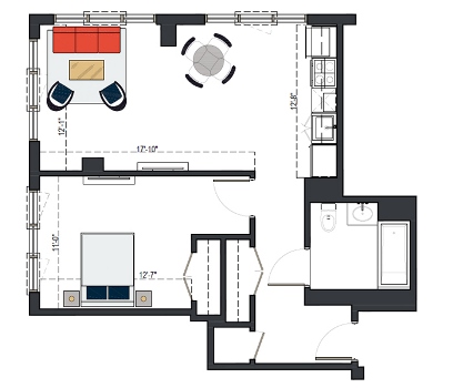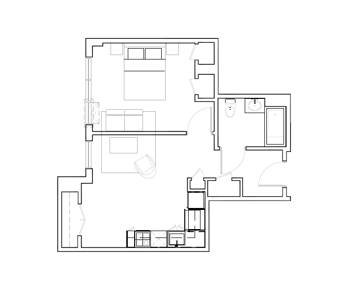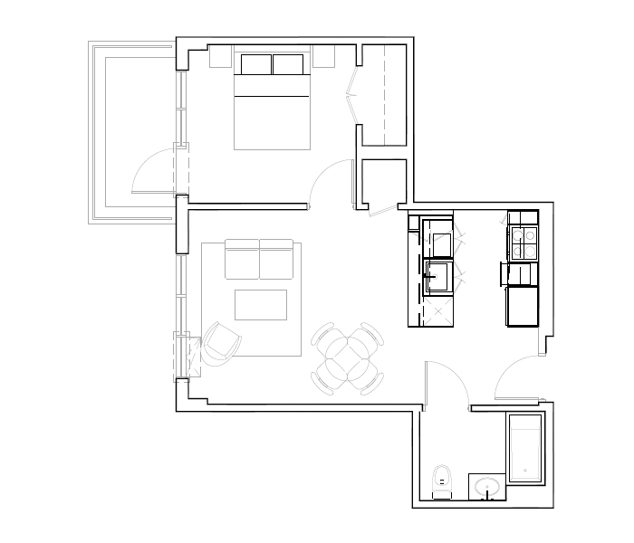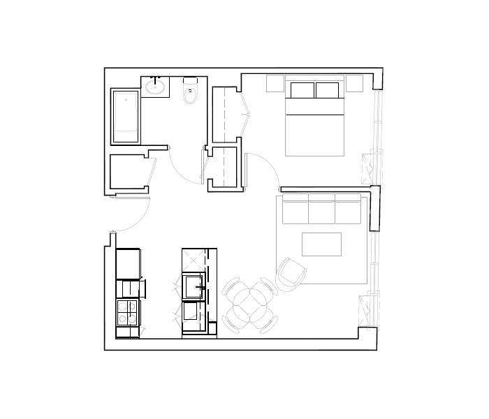 7th Floor, 1 Bed, 666 SF