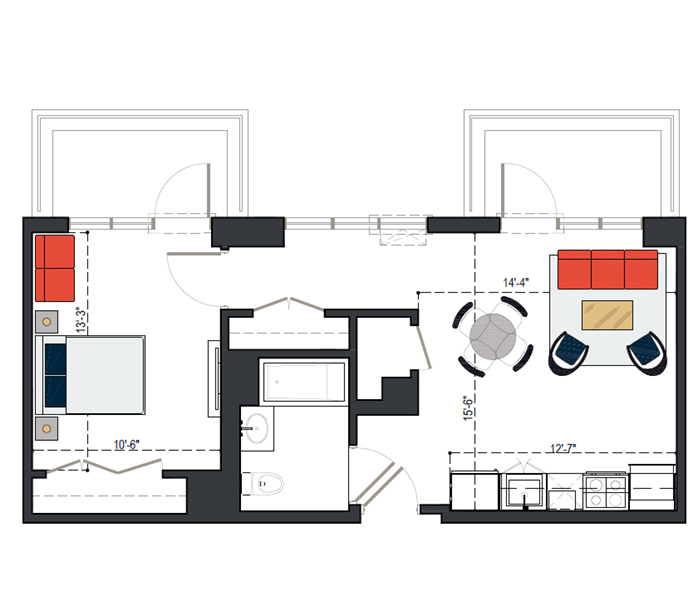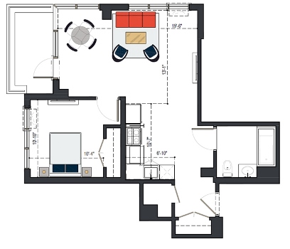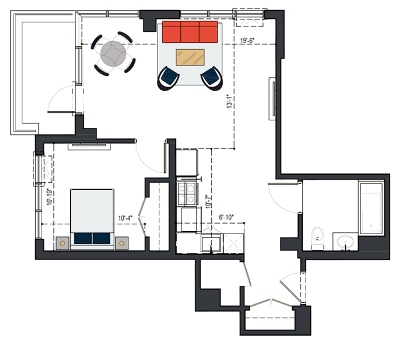 6th Floor, 1 Bed, 753 SF
