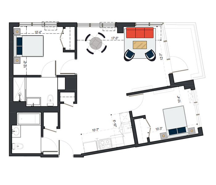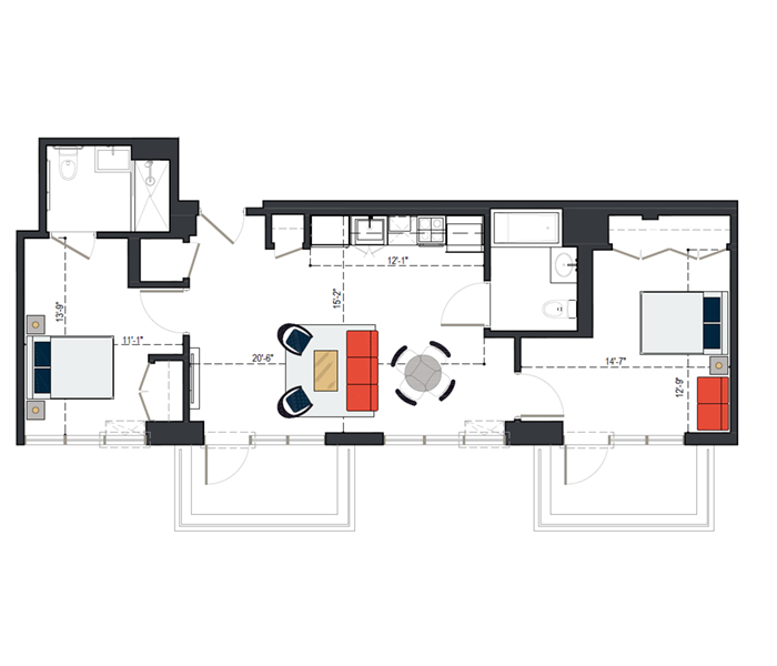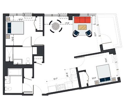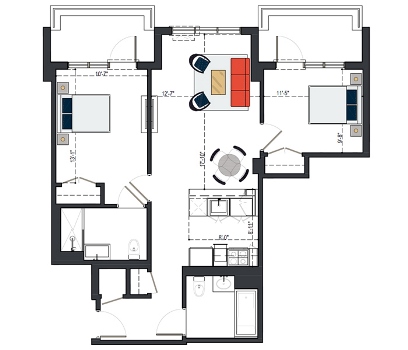 6th Floor, 2 Bed, 1091 SF