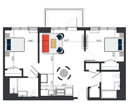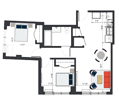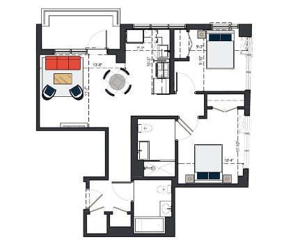 View MoreRheingold’s generously-sized two bedroom units allow you to really stretch out. Deluxe two bedrooms offer a second bathroom, often presented as part of a master suite.