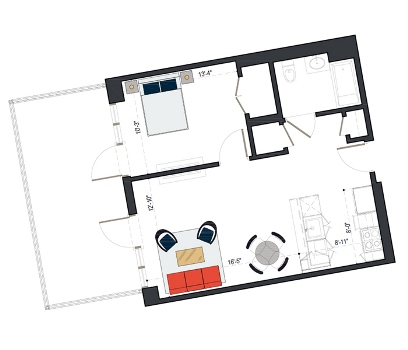 6th Floor, 1 Bed, 516 SF