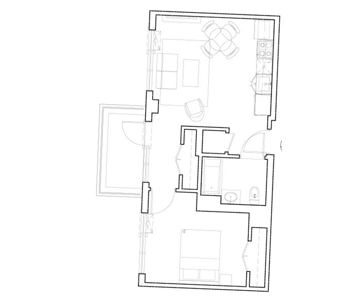First Floor, 1 Bed, 646 SF