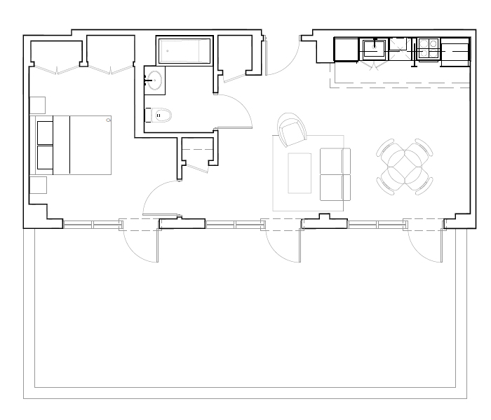6th Floor, 1 Bed, 652 SF