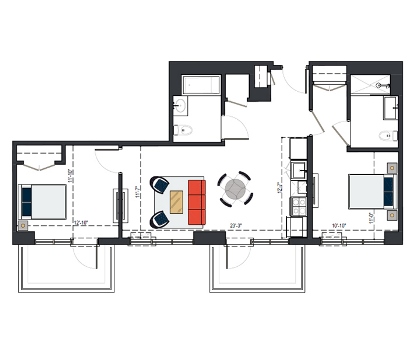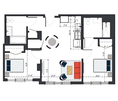 6th Floor, 2 Bed, 843 SF
