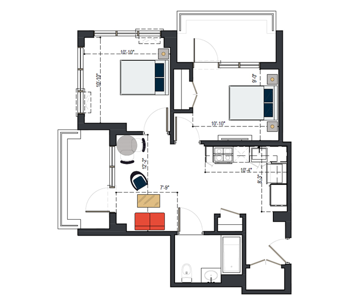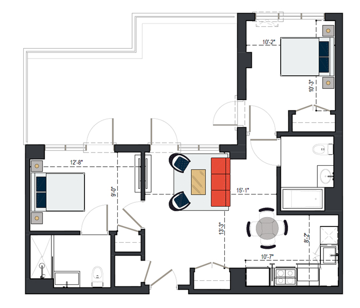 8th Floor, 2 Bed, 1067 SF