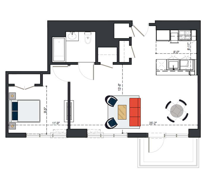8th Floor, 1 Bed, 682 SF