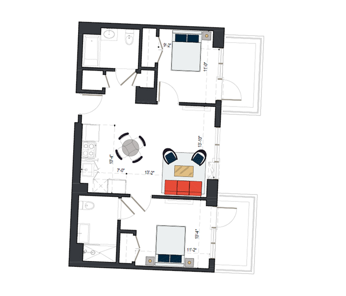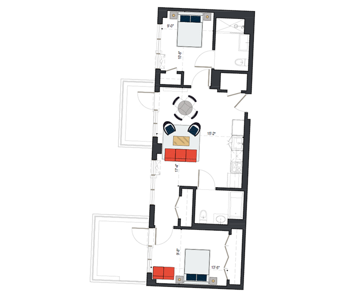 Rheingold’s generously-sized two bedroom units allow you to really stretch out. Deluxe two bedrooms offer a second bathroom, often presented as part of a master suite.