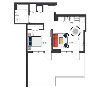 6th Floor, 1 Bed, 794 SF
