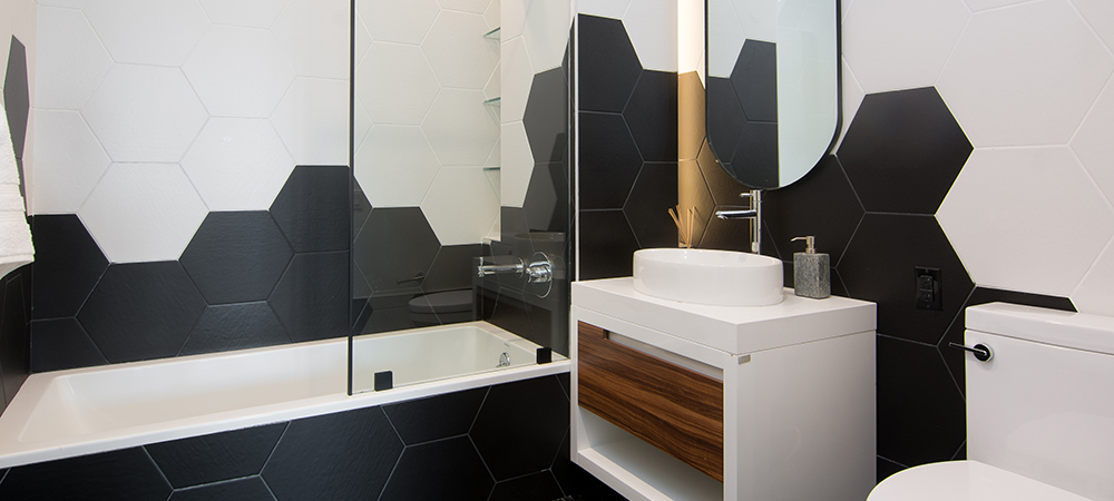 Smooth Italian porcelain floors & subway tiled walls adorn the sumptuous bathrooms. A natural palette of marble white & cool gray enhances the serene atmosphere while sleek chrome fittings bedeck the oversized bath tub.